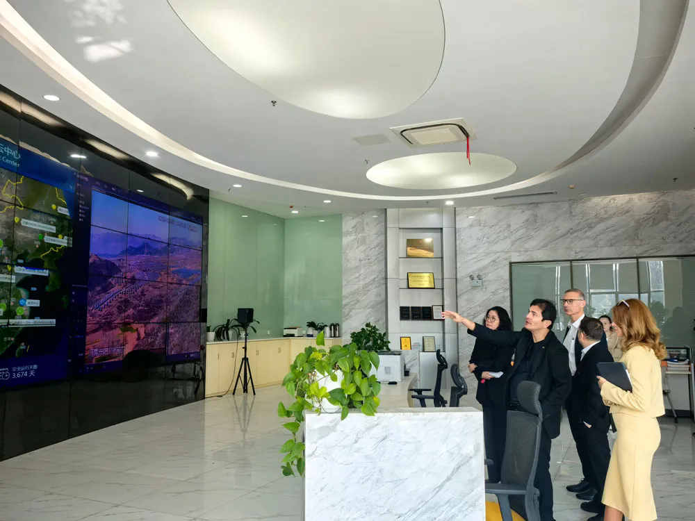 訪問期間,代表團先后參觀了企業展廳、智能化組件生產線及產品實驗室。在展廳內,代表團系統了解了騰暉光伏的發展歷程、技術演進及全球化項目成果,重點關注高效N型TOPCon組件、異質結(HJT)、BC技術等核心產品。