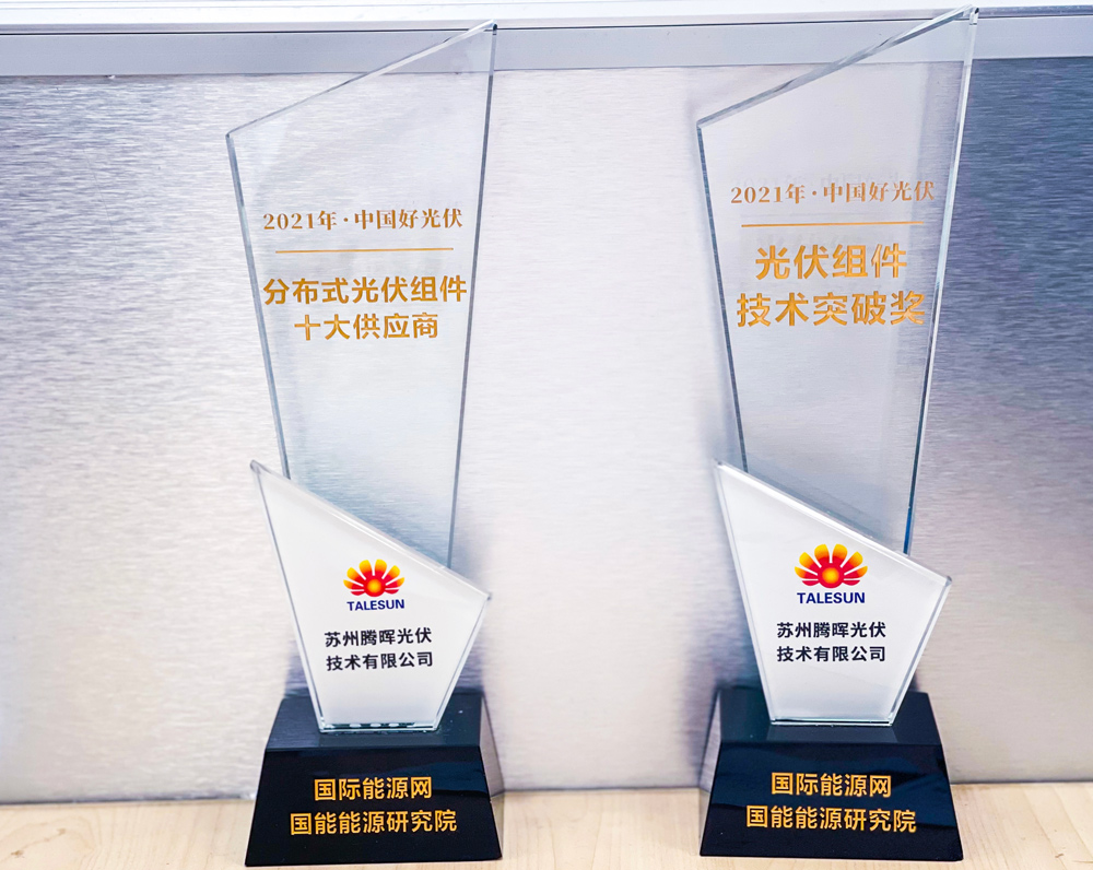 晚宴上,騰暉光伏榮獲“2021年度分布式光伏組件十大供應商獎”和“2021年度光伏組件技術突破獎”。這兩個獎項的獲得是對騰暉光伏2021年度在光伏組件領域所做出的努力的肯定,也體現了騰暉光伏的行業品牌影響力。一直以來,騰暉光伏堅持用品質與創新邁向更高的臺階,公司將以本次獲獎為契機,繼續竭盡全力為客戶提供最優質的產品和服務,共同維護光伏產業發展的行業口碑。努力為中國早日實現“碳中和”目標貢獻力量!
