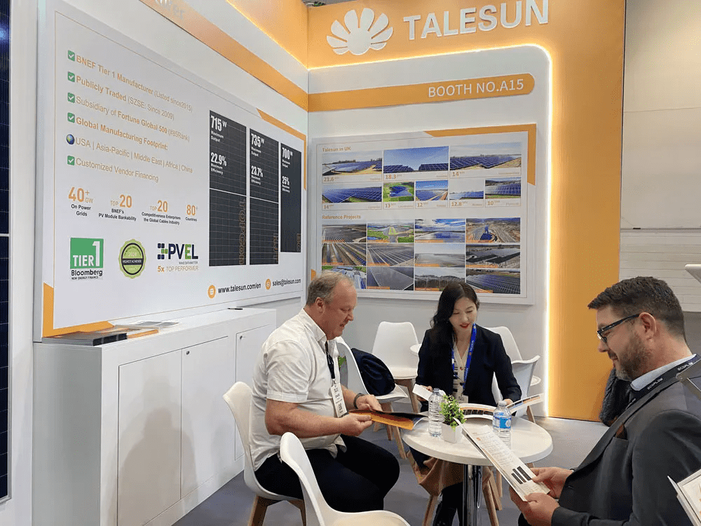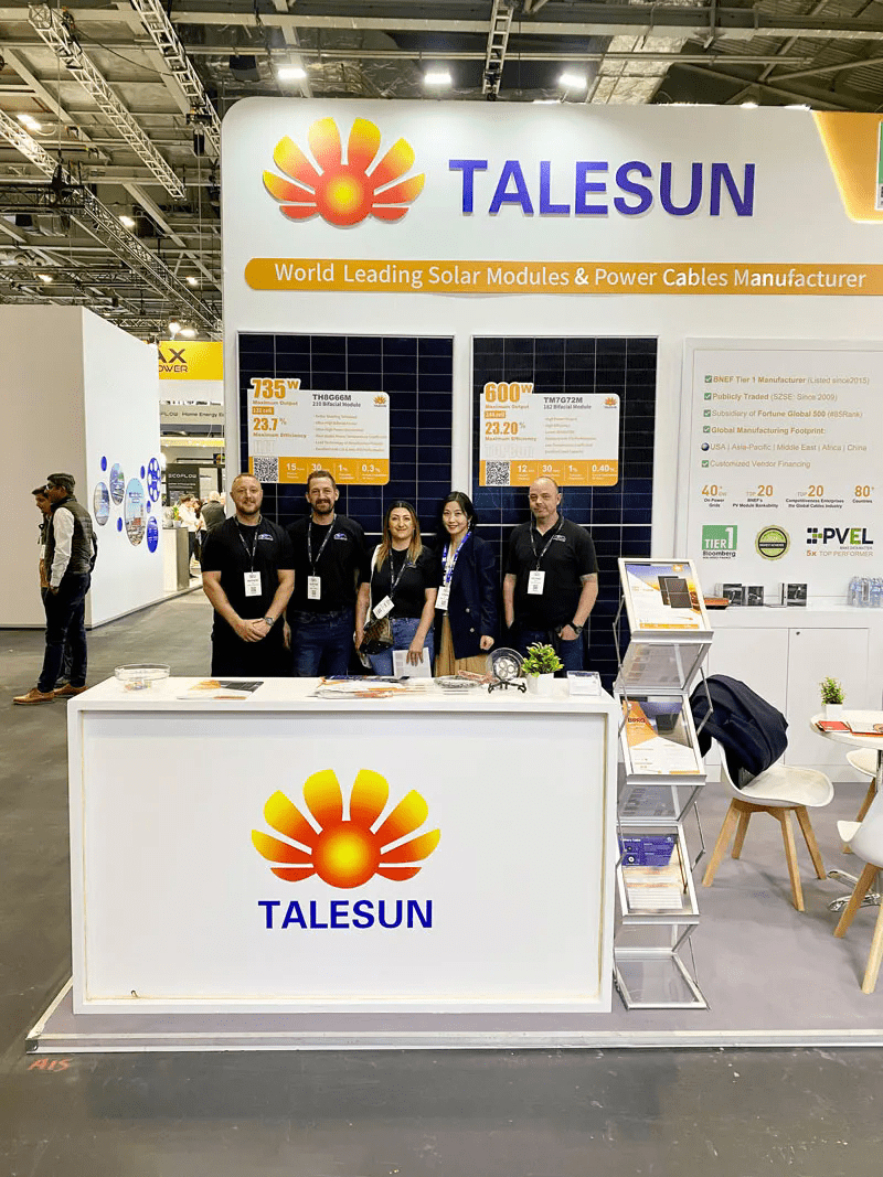 2025年4月2日,英國倫敦ExCeL國際會展中心迎來了一場全球光伏與儲能領域的盛會——2025英國倫敦國際太陽能暨儲能展(Solar & Storage Live London)。騰暉光伏(Talesun Solar)攜高效TOPCon 600W和HJT 735W光伏組件重磅亮相,展示了公司在新能源領域最新成果,吸引了來自全球各地的行業專家、投資者及客戶的關注。