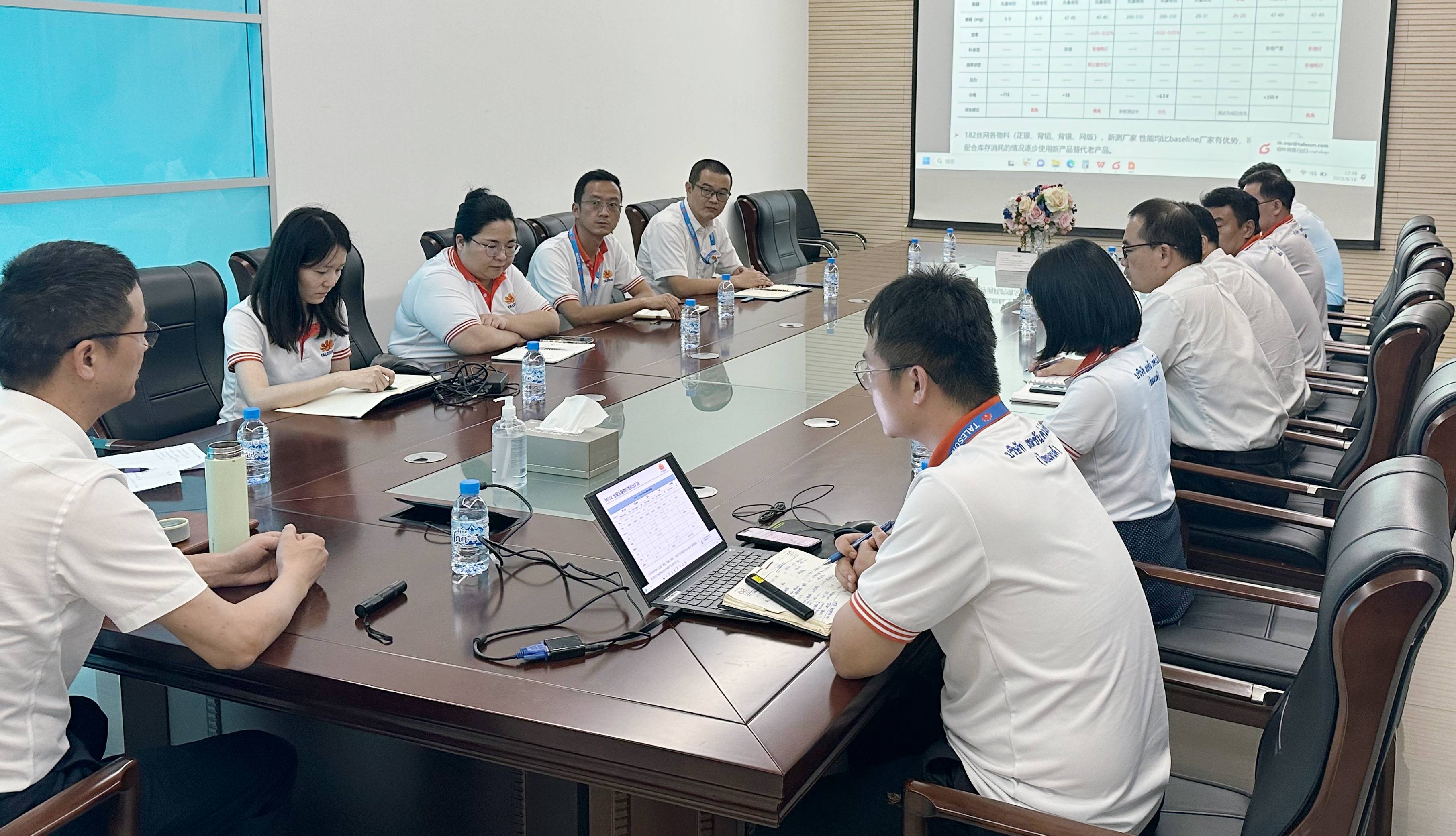 當地時間 2023 年 8 月 17 日下午,蘇州騰暉光伏技術有限公司(以下簡稱“騰暉光伏”)常務副總裁張金春先生到訪騰暉泰國生產基地。在泰國基地總經理方 亮先生的陪同下,實地參觀了電池/組件車間,現場詳細聽取工廠生產運營及技改 項目進度匯報。 泰國基地對近期電池/組件加工成本進行了分析匯報,張金春先生對泰國基地 的發展和生產運營給與了高度肯定,并代表董事長表達了對中方駐外人員的辛苦 付出表示感謝,同時提出要求在保證產品質量產能前提下,成立專項改善小組持 續降本增效,開源節流,不斷加強泰方員工管理梯隊建設,培養雙語基層人才, 并加速新增組件產能的項目推進工作。