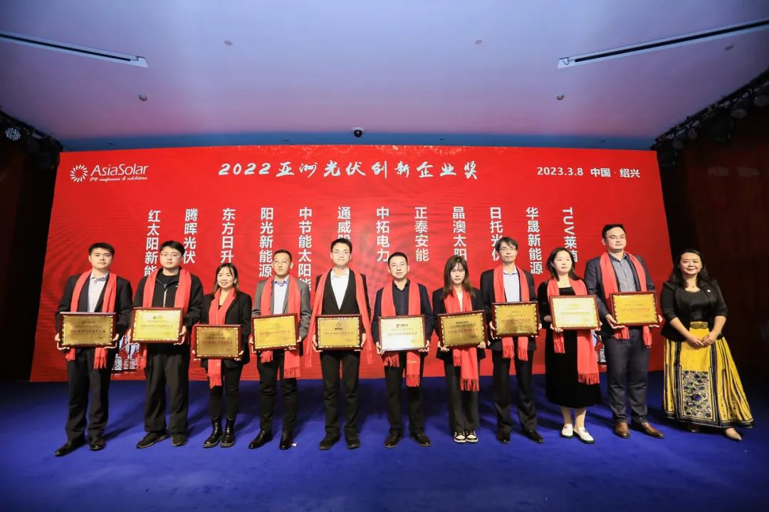 同期3月8日晚,由亞洲太陽能光伏創(chuàng)新展覽會組委會舉辦的“亞洲光伏創(chuàng)新獎頒獎盛典”正式公布獲獎企業(yè)名單,騰暉光伏再次榮登獲獎榜單,獲得“2022亞洲光伏創(chuàng)新企業(yè)獎”。