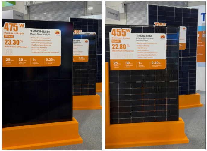 騰暉光伏本次重點展出的N型產品組合,全面覆蓋了澳大利亞市場的多元需求。其中,TH8G66M 735W(HJT)組件以23.66%的極致效率和領先的溫度系數,成為追求最低度電成本的大型地面電站之選;TN9C54M 475W(BC)組件則憑借23.30%的效率、卓越的抗陰影能力及全黑美學,精準定位于工商與高端戶用屋頂場景;而基于N型TOPCon技術的TM3G48M 455W雙玻組件,則以22.80%的效率、更低的系統成本和卓越的可靠性,為各類嚴苛應用提供了高價值的穩健之選。